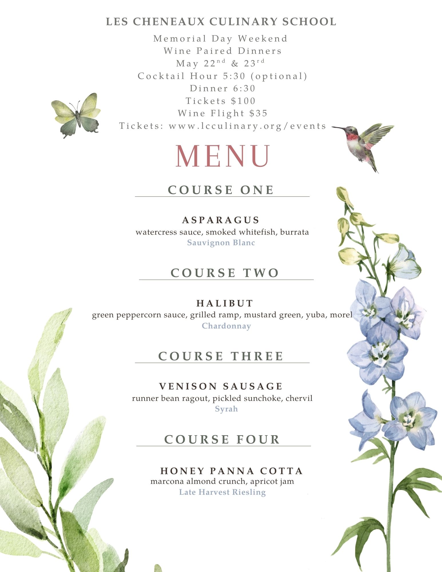 Join us for our annual Memorial Day Weekend dinner and enjoy a seasonal dining experience featuring fresh, celebratory flavors crafted by Chef Zach and this year’s talented group of students.